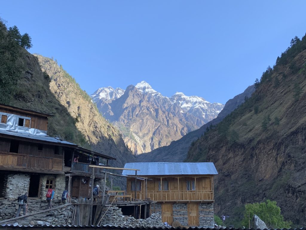 This was one of the most spectacular days of the trek. Snow-capped peaks towered above the trail, and for the first time, I had clear, jaw-dropping views of Mount Manaslu itself. Samagaon is a stunning high-altitude village surrounded by glaciers and massive Himalayan giants — a place that makes you stop and stare.
