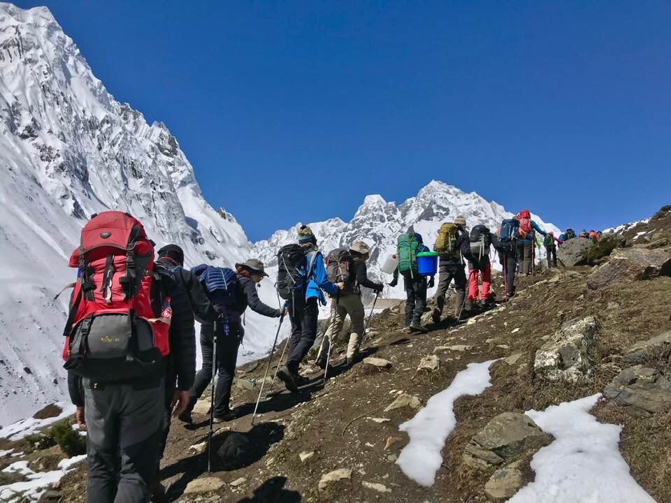 I trekked in April, and conditions were nearly perfect: clear skies, blooming rhododendrons, warmer days, and manageable snow at high elevations.