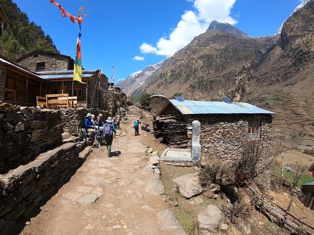 Today we officially entered the restricted Manaslu region. The trail climbed steadily through forests and small villages, and the crowds disappeared almost completely. The sense of remoteness grew stronger with every mile, making Deng feel like a quiet outpost tucked into the mountains