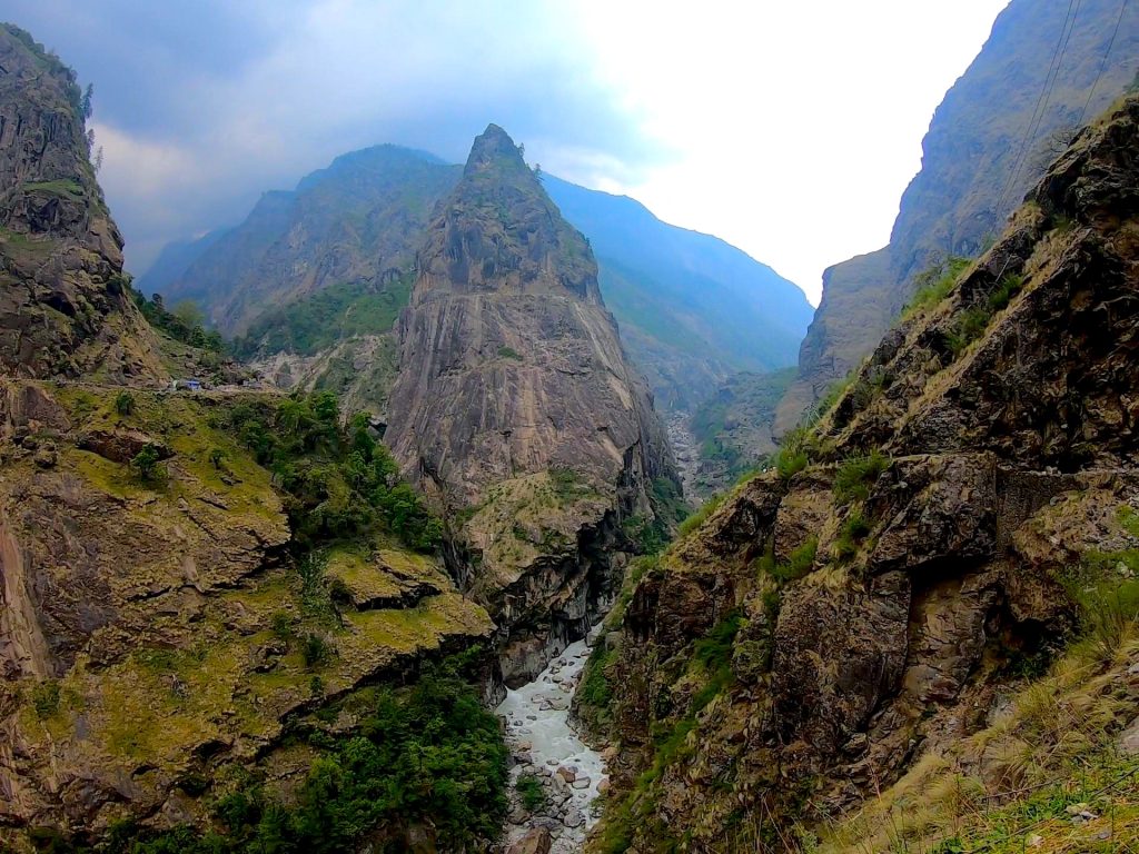 My first day on the trail followed the Budhi Gandaki River through dense jungle, narrow paths, and swaying suspension bridges. The air was hot and humid, and the trail constantly climbed and dropped, keeping my legs honest. Waterfalls spilled down cliffs, and every turn felt like stepping deeper into Nepal.
